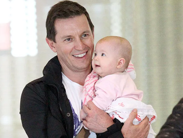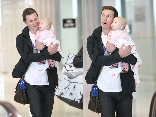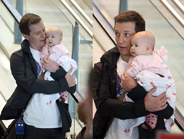 The doting dad cradled his adorable daughter through Sydney airport last week.
