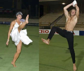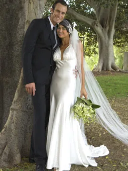 At just over 2m tall, Fitzy towered over his dainty bride BJ, who looked stunning in her silk-satin gown by local designer Alexia George.