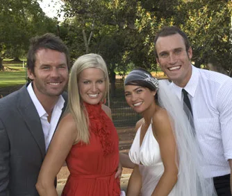The newlyweds with TV host Tom Williams and his girlfriend Kylie Speer.