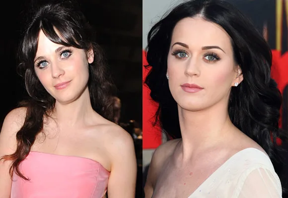 With their dark hair and striking blue eyes, actress Zooey Deschanel and singer Katy Perry could pass as twins.