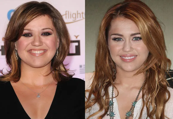 Kelly Clarkson and Miley Cyrus also share the same face and eye shape.