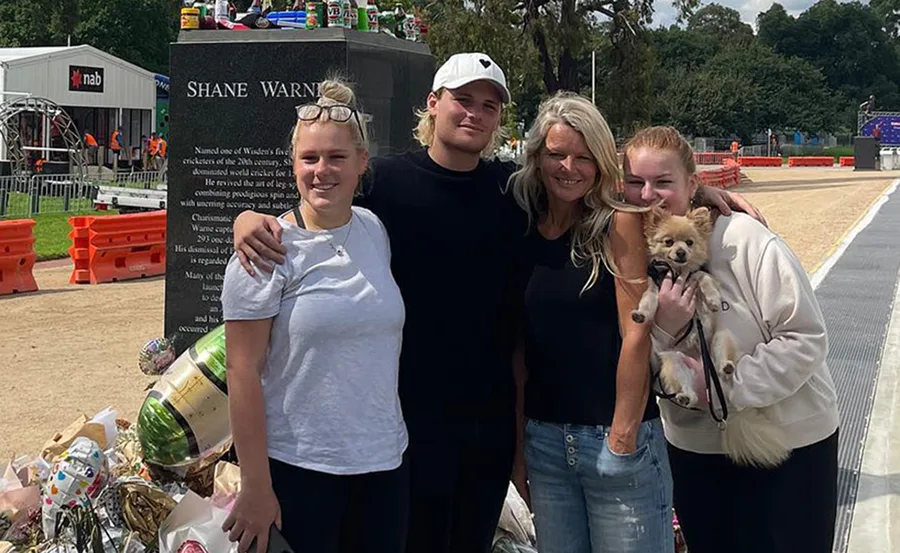 Shane Warne’s three children, along with his ex-wife, have made a bittersweet pilgrimage to his statue at the Melbourne Cricket Grounds to remember the legend they called Dad.