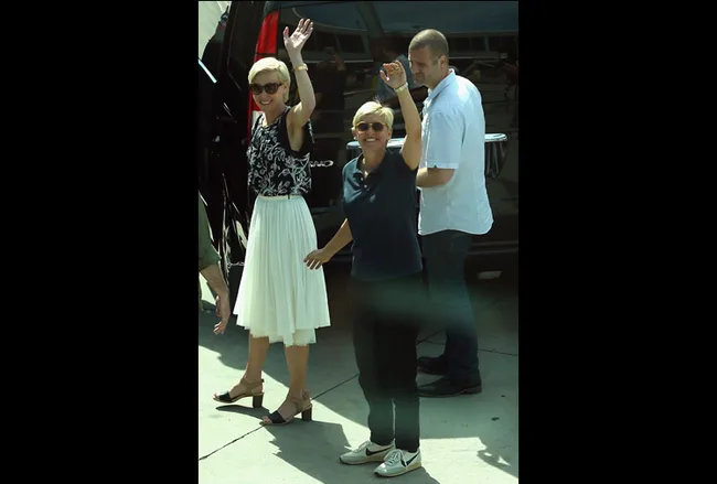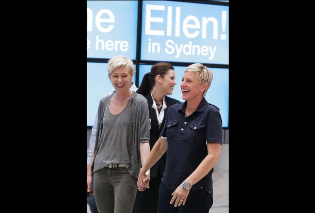 Joined by her wife Aussie actress Portia De Rossi and her mother Betty, Ellen danced with the “Ellen choir” before making her way through Sydney airport.