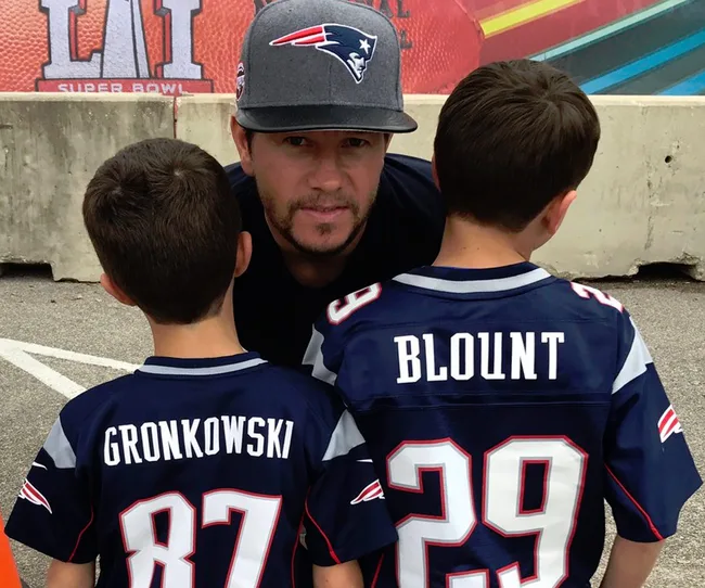 Mark shared this snap with the Patriots’ biggest fans, his two sons Brendan and Michael.