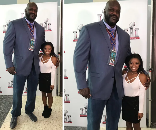 The tiny Olympian shared the cutest selfie with basketballer Shaquille O’Neal, penning, “Hi Shaq!”