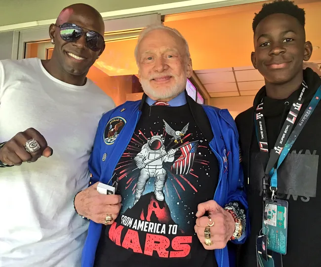 Astronaut Buzz Aldrin hangs out with former Superbowl champ Donald Driver.