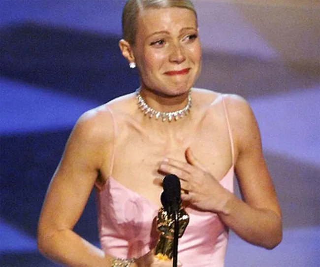 Cry baby Gwyneth Paltrow’s acceptance speech for Shakespeare in Love was short and sweet – because Gwyneth couldn’t get the words out. The actress was so teary, her speech had to be cut short.
