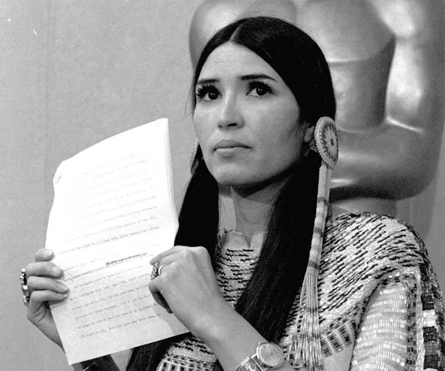 An important message When Marlon Brando won his Oscar for The Godfather in 1973, it was not the man himself who came onstage to accept it. Sacheen Littlefeather, a Native American woman, came onstage at his request and made a statement about the ‘Wounded Knee’ incident. The host told her if she wasn’t off the stage in 60 seconds, he would have her arrested. She was booed off stage.