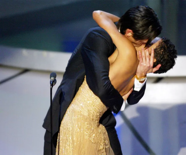The kiss When dark horse, Adrien Brody’s name was called out in the Best Actor category, no one was as stunned as he. Daniel Day Lewis was thought to be the front runner for Gangs of New York. Adrien strode onto the stage, he pulled presented Halle Berry in by the waist and gave her a kiss that has gone down in history.
