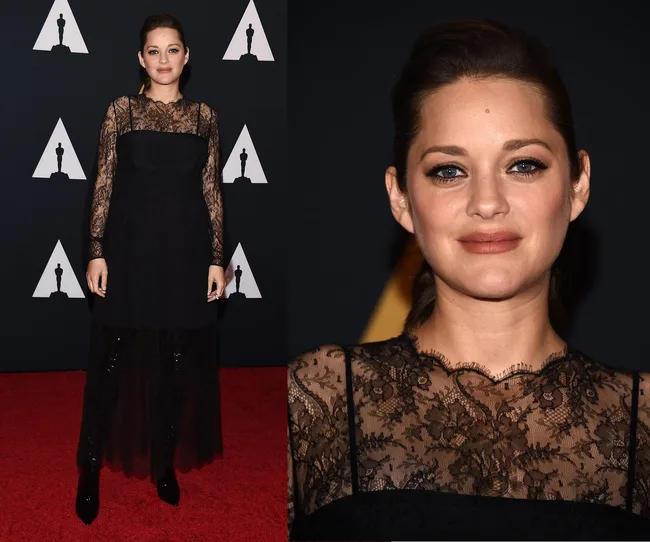 A pregnant Marion Cotillard oozed elegance in a black lace number.