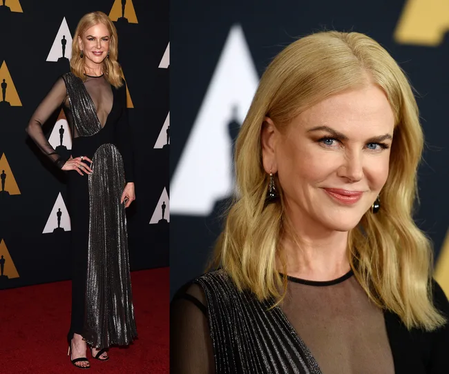 Nicole Kidman glowed in a plunging sheer number. The actress, who recently celebrated her 10th wedding anniversary with husband Keith Urban, is promoting her new film Lion. WATCH: Nicole presents an award at the event. Post continues after the video…