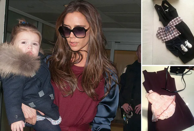 Harper and her mother Victoria Beckham also have matching designer outfits.