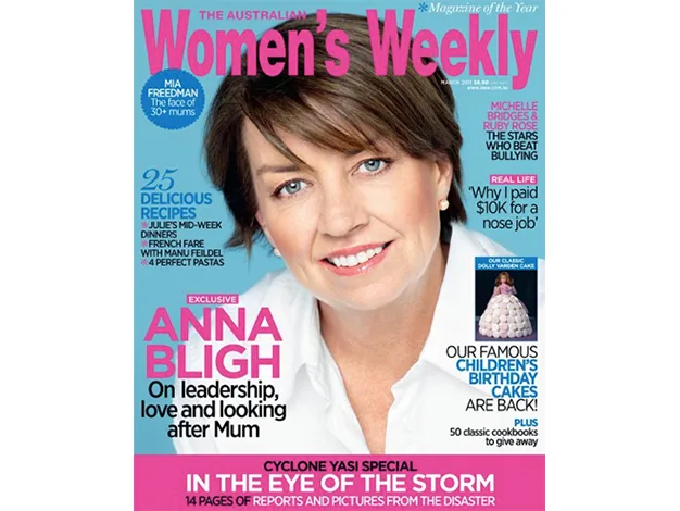 Former QLD Premier, Anna Bligh made an appearance on the March 2011 cover of The Australian Women’s Weekly. The original interview was organised before Cyclone Yasi hit but within 24 hours of the issue hitting newsstands nationwide, the Queensland opposition was attacking the cover star for posing for a photo shoot while her state was in turmoil.