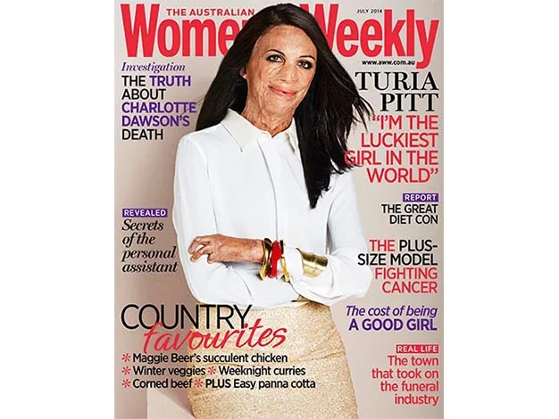 Burns victim Turia Pitt graces the cover of The Weekly’s July 2014 issue. “The knock-on effect will be profound,” says Mamamia’s Kate Leaver. “By putting Turia on the cover of AWW, the magazine has given a gift to everyone who doesn’t look like a supermodel and who believes beauty is more than skin deep.”