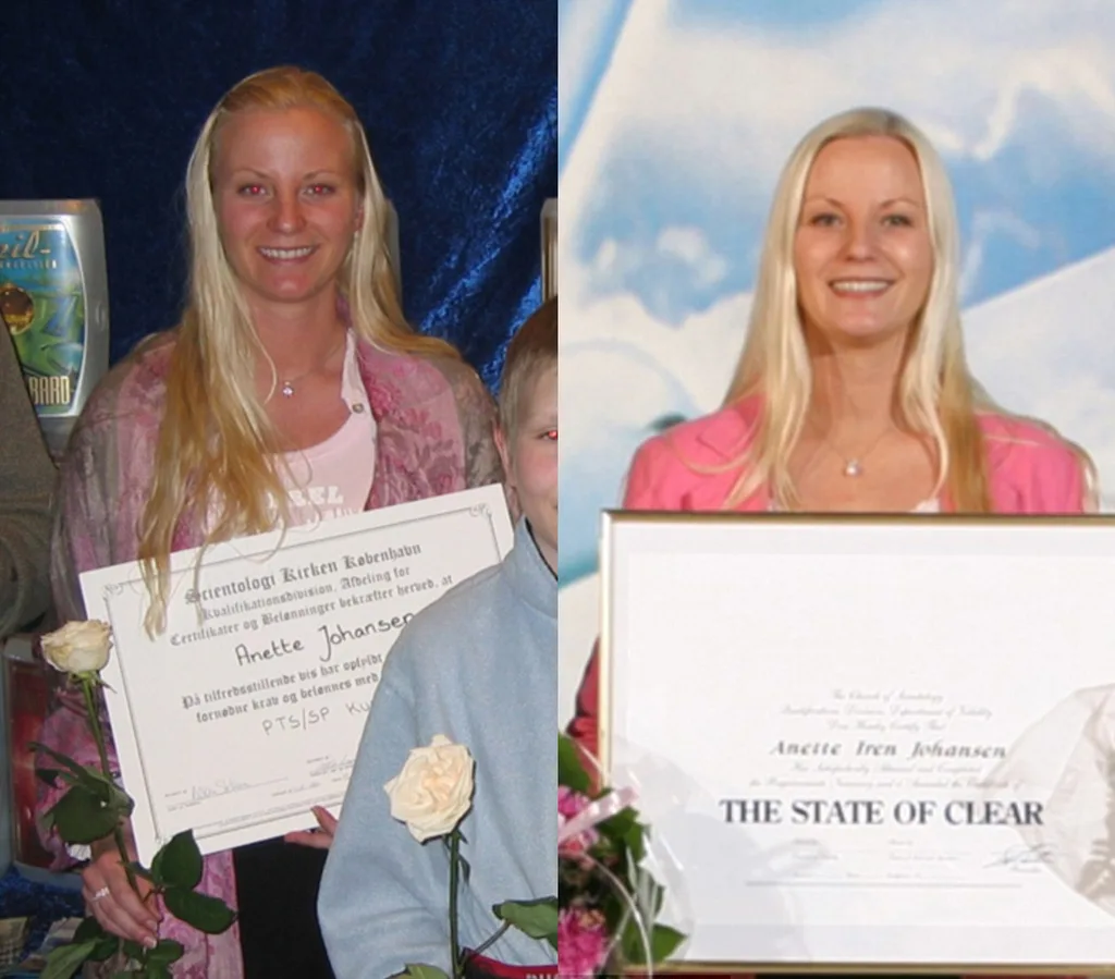 Anette with her various Scientology awards before she left the church.