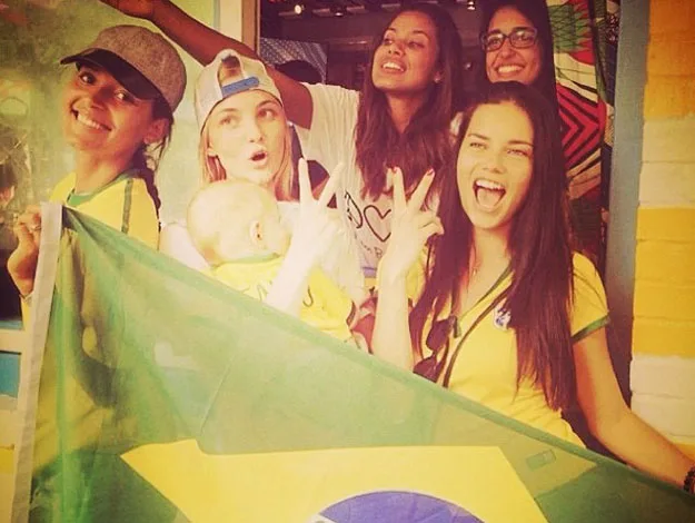 Adriana Lima and friends show their support for Brazil.