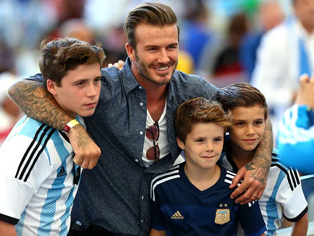 David Beckham and his three sons Brooklyn, Cruz and Romeo pose for a family photo together at the World Cup final.