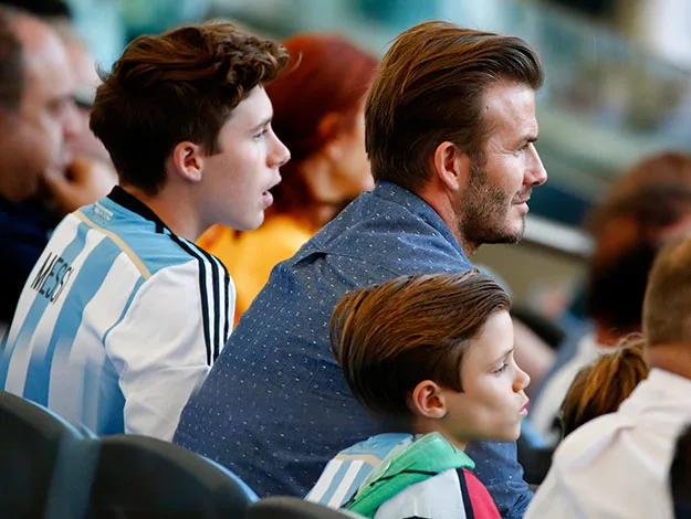 David Beckham and his sons were engrossed in the game as they watched the World Cup final.