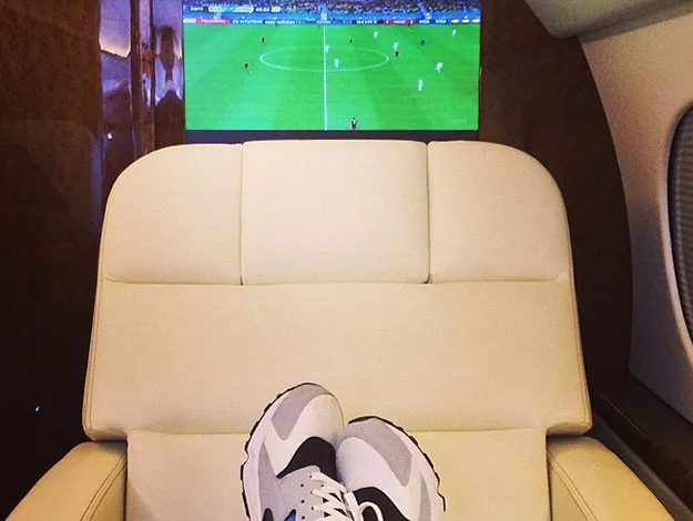 Drake posted this Instagram snap from a private jet, showing off how he watches the game in style.