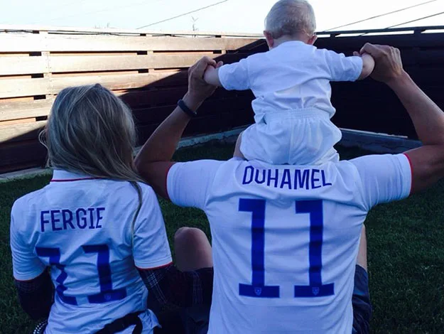 Fergie, husband Josh Duhamel and their baby Axl made it a family affair in their matching team USA jerseys.