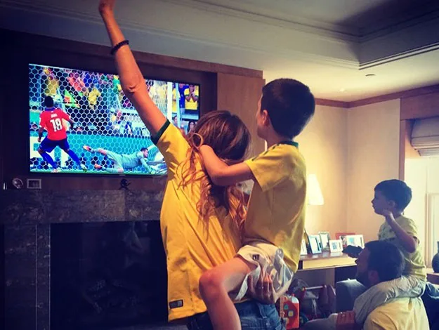 Gisele posted pics throughout the World Cup of her and her family cheering on their home team of Brazil from her living room.