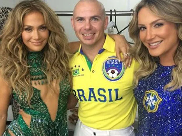 J-Lo posted this snap from behind the scenes at the opening ceremony, alongside fellow performers Pitbull and Claudia Liette