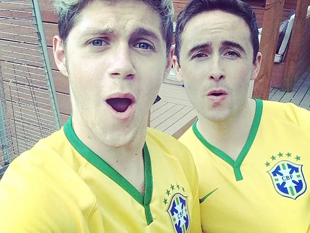 One Direction’s Niall Horan and friend show their support for Team Brazil.