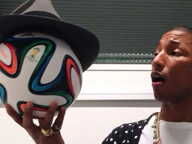 Pharrell Williams decorated one of the official FIFA World Cup soccer balls with one of HIS official Pharrell hats!