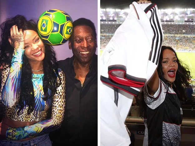 Rihanna poses with famous player Pele and cheers on the players at the final.