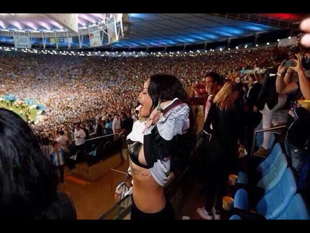 Rihanna also got into the spirit of things with a bit of shirt-lifting at the World Cup final.