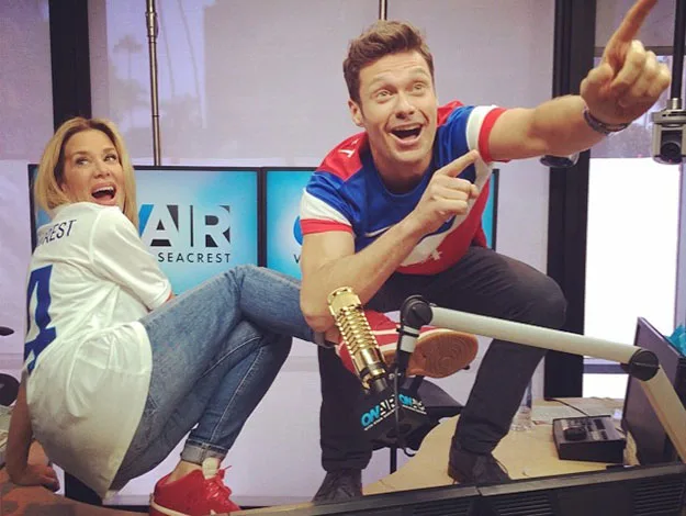 Ryan Seacrest posted this pic of himself and co-host Ellen K multitasking by watching a USA game during their radio show.