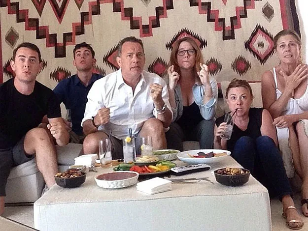 Tom Hanks and his entire family including wife Rita Wilson and fellow actor son Colin Hanks posted this supercute snap of them cheering on their home team during a Team USA game.