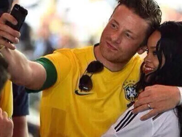 What an odd couple: Jamie Oliver posted this snap of him and Rihanna at the World Cup final.