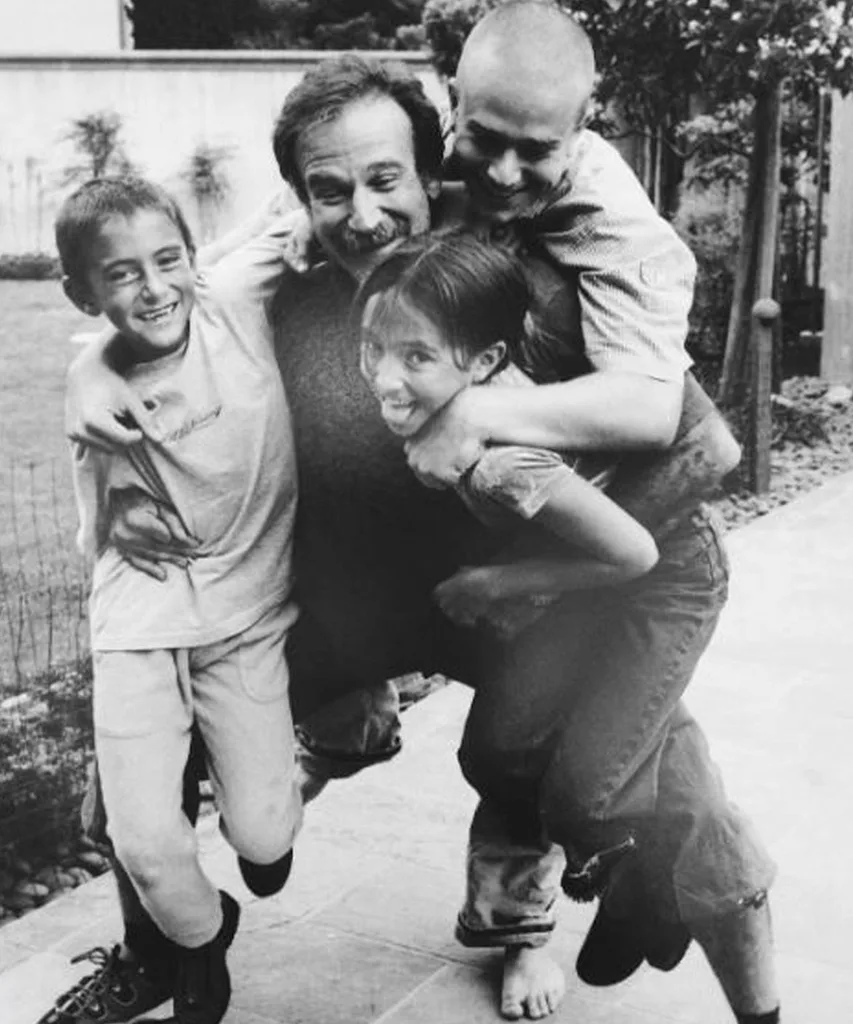She shared the heart-felt message alongside a gorgeous throwback family photo featuring Zelda and her siblings, Zachary and Cody, all hanging off the funnyman actor.