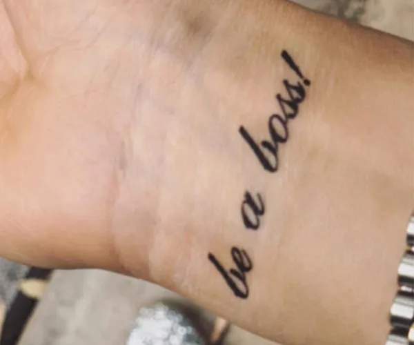 The tattoo, perfect lowercase black cursive on her right wrist, read “be a boss!” and seemed to be a perfect fit for the author, beauty guru, fashion designer and writer.
