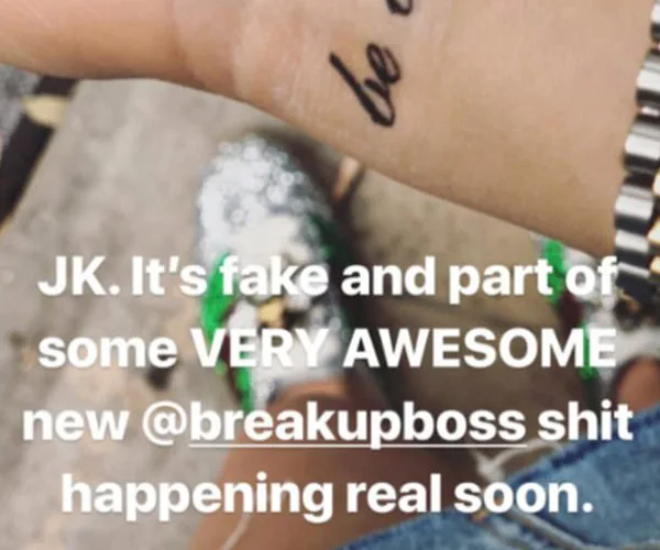 The wife of Hamish Blake told her almost 650,000, “JK. It’s fake and part of some VERY AWESOME new @breakupboss sh*t happening real soon.”