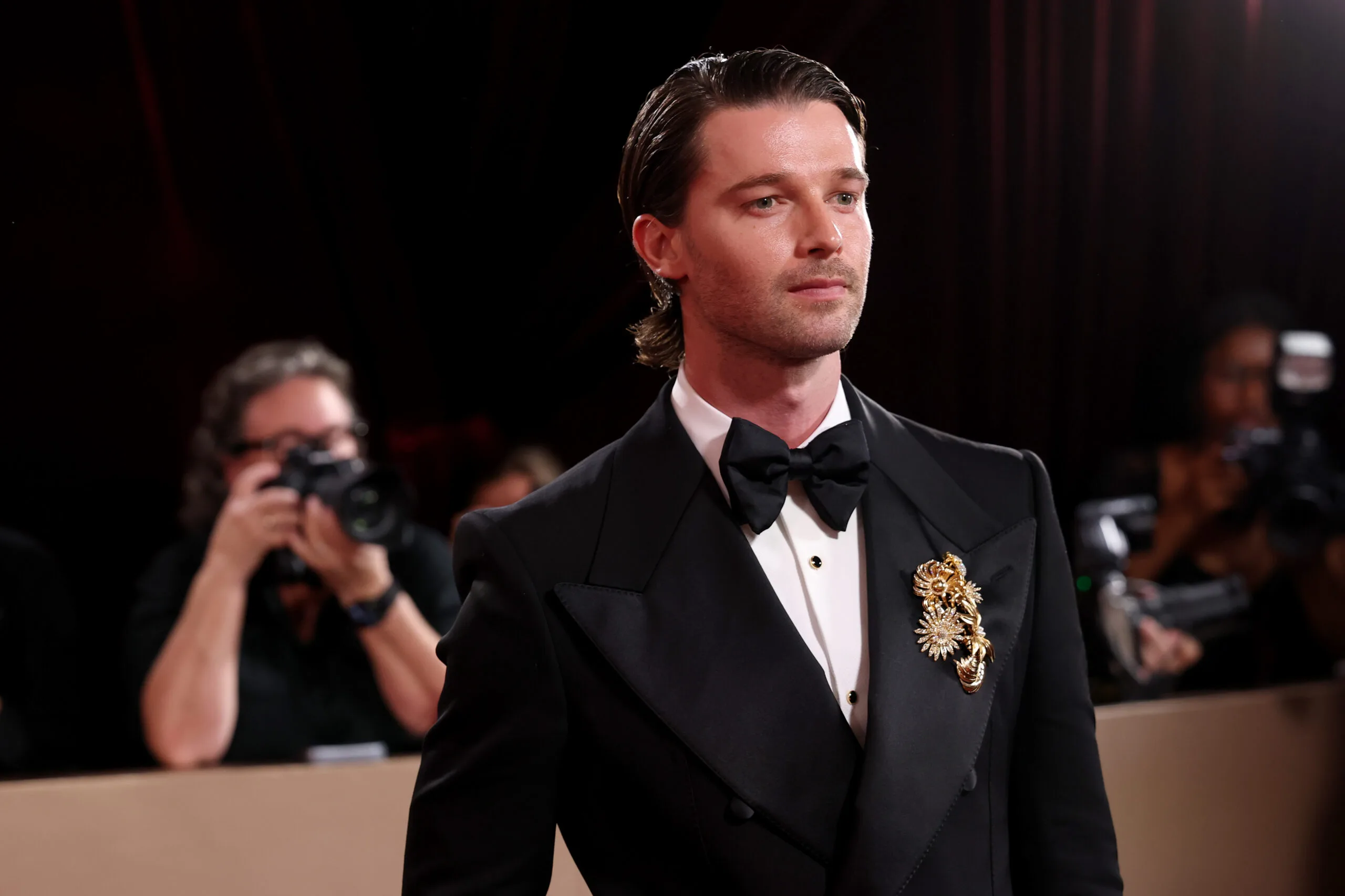 The White Lotus star Patrick Schwarzenegger looks as if he was born to wear this suit.