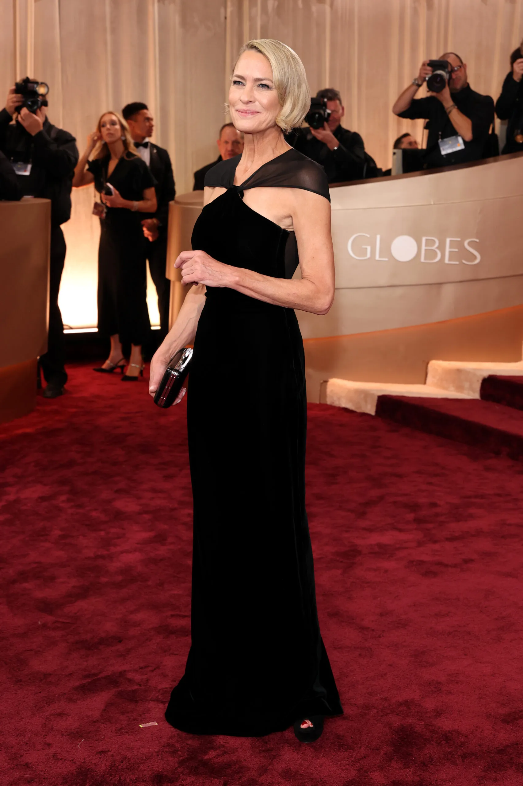 Robin Wright is serving complete elegance in this floor-length black gown. Paired with the glowing skin and simple hair, we can’t get enough.
