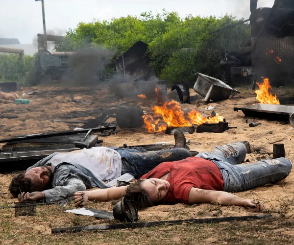 In shocking scenes, bodies lie strewn on the ground outside the surf club after Ryder and Chloe’s food truck explodes in Home And Away this week.