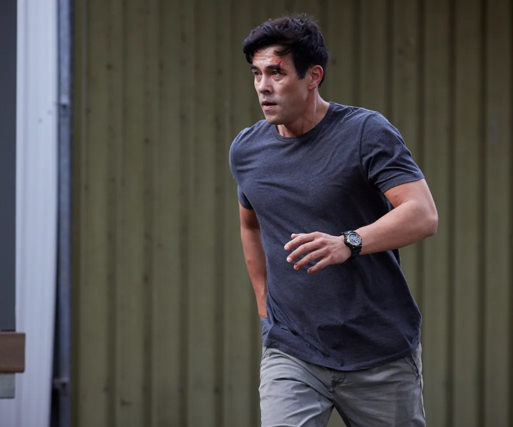 Lying unconscious and bleeding in the Vita Nova compound, Justin is in a bad way on Home And Away this week. No-one knows he’s there and as time ticks away, he may not make it out…