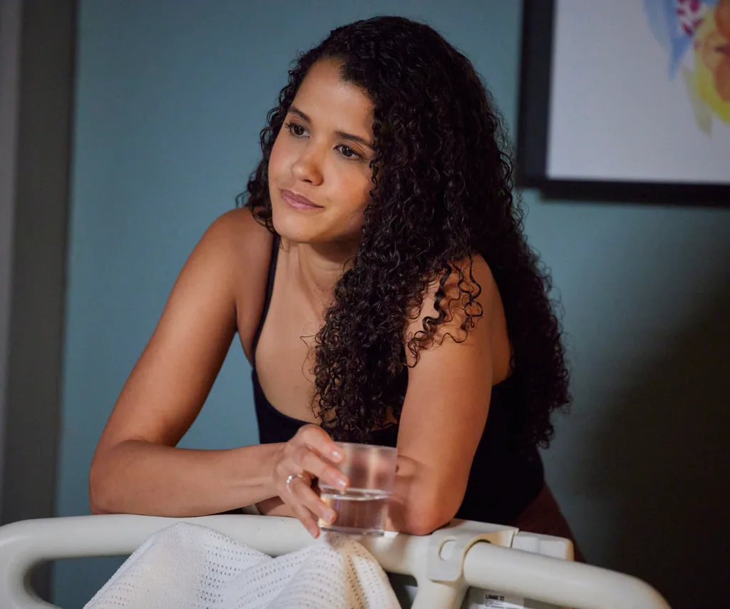 (IMAGE: Seven)In the corridor, Dr Bree Cameron (Juliet Godwin) alerts Rose to her concerns. Xander is grieving and agitated – in his condition, leaving the hospital isn’t advisable.