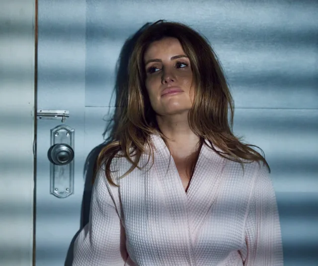 Fearing for her safety, Leah hides in the bathroom as Justin pounds at the door, begging for his drugs.