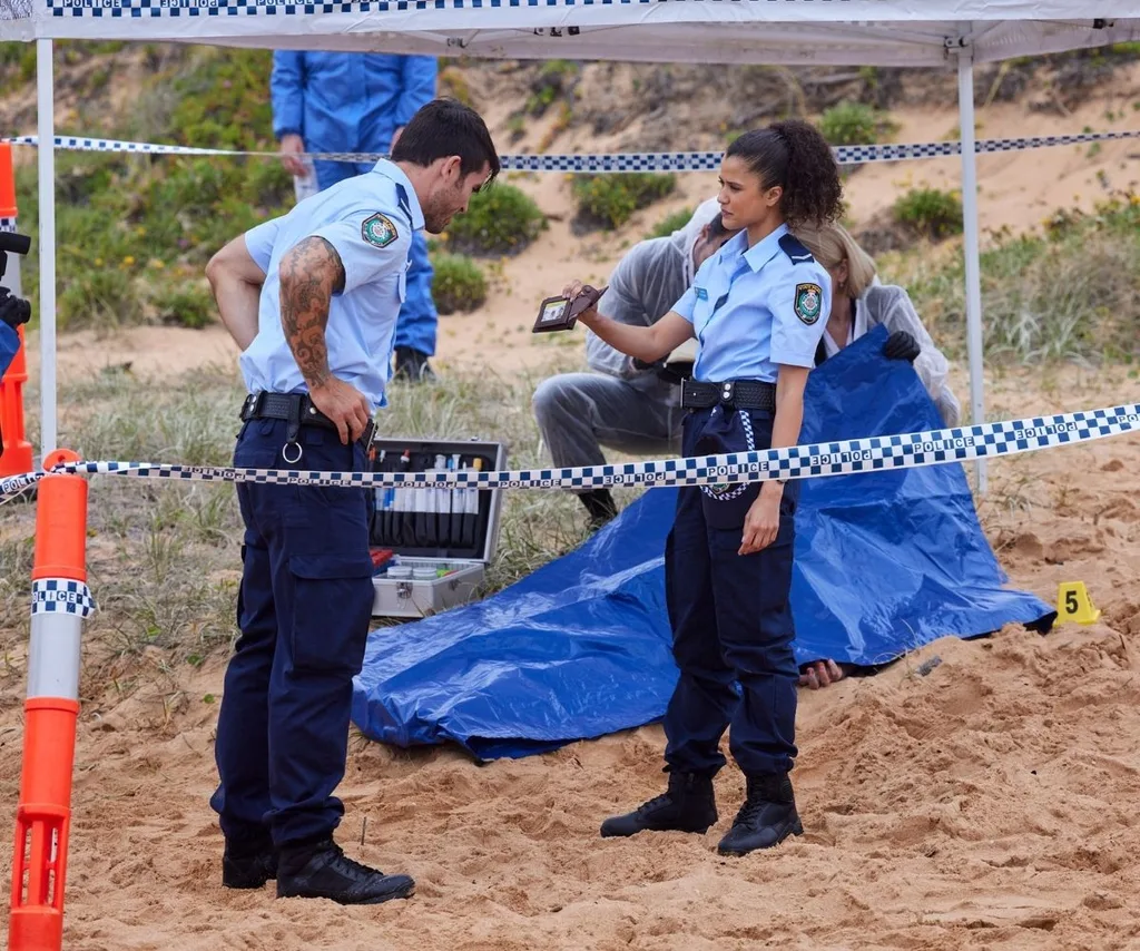 In this week’s Home and Away episode, the peaceful sand of Summer Bay is turned into a crime scene when Leah (Ada Nicodemou) and Justin (James Stewart) discover the body of PK (Ryan Johnson) on the beach.