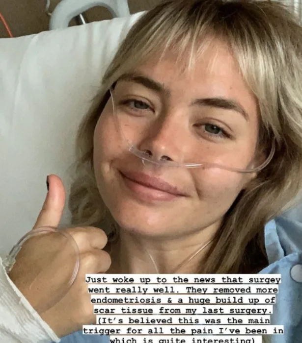 “Just woke up to the news that surgery went really well. They removed more endometriosis and a huge build up of scar tissue from my last surgery.