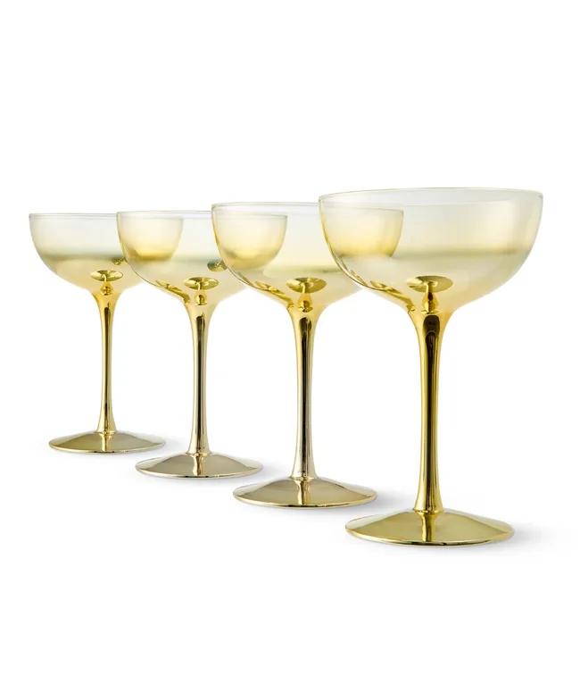 Toast the season in style with this set of 4 gold-look coupe glasses. Their elegant shimmer brings a festive sparkle to any Christmas celebration.