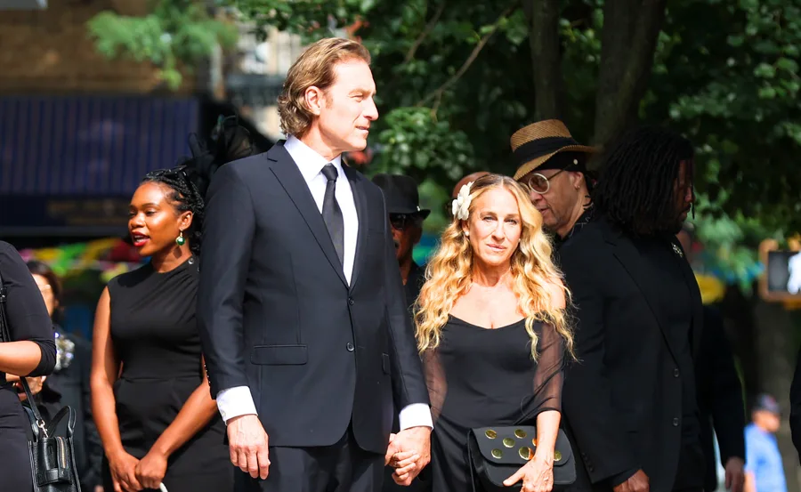 The odd attire – considering And Just Like That is known for its bold fashion statements – has led fans to believe a funeral scene was being filmed.