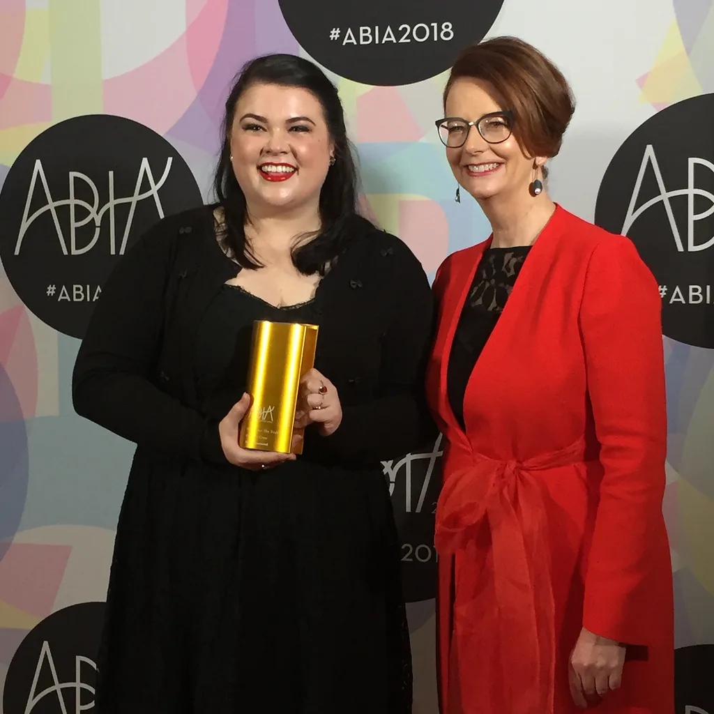 Author Jessica Townsend (pictured here with former Prime Minister Julia Gillard) had incredible success at the 2018 ABIA Awards, winning three categories for her book, Nevermoor: The Trials of Morrigan Crow (Credit: The Australian Women’s Weekly)*