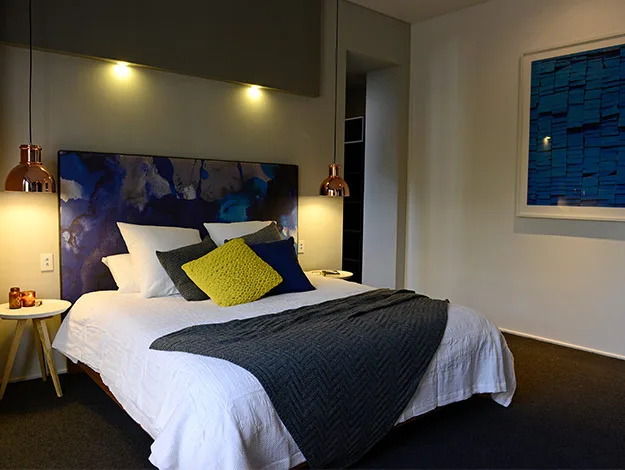 The judges complimented the colour scheme in Shannon and Simon’s spectacular master bedroom.