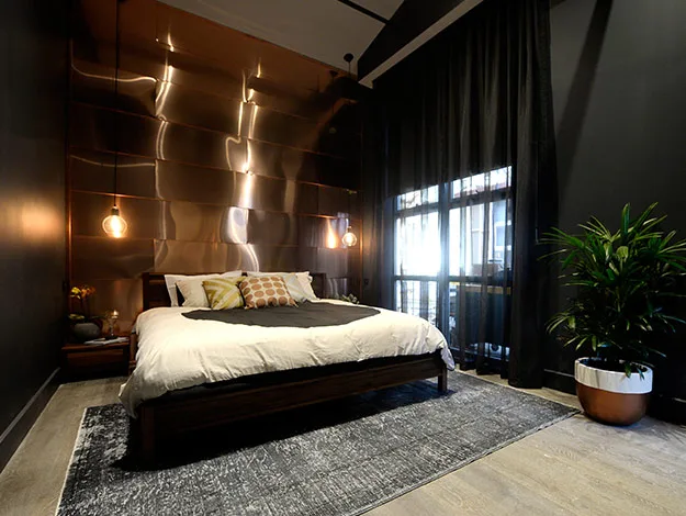 All three judges were very impressed by Michael and Carlene’s sexy and sophisticated master bedroom design.