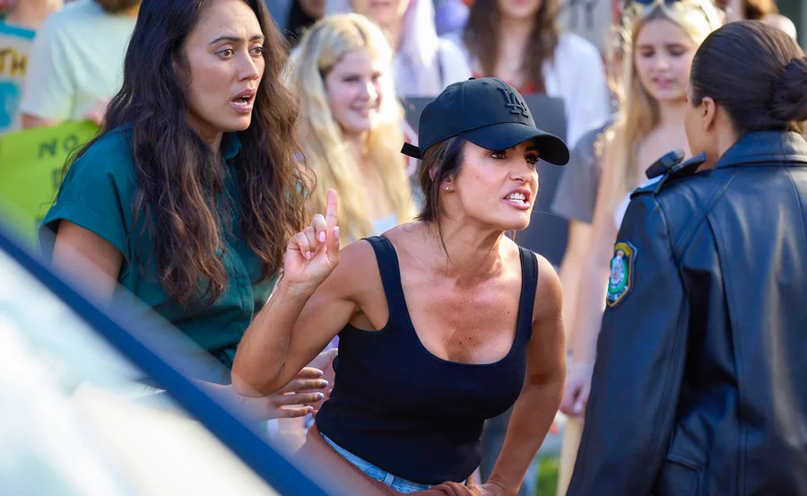 Kirby’s fight for what’s right turns into an ugly confrontation in Home And Away, when she holds a protest march against Contact Agency – and Leah is arrested!